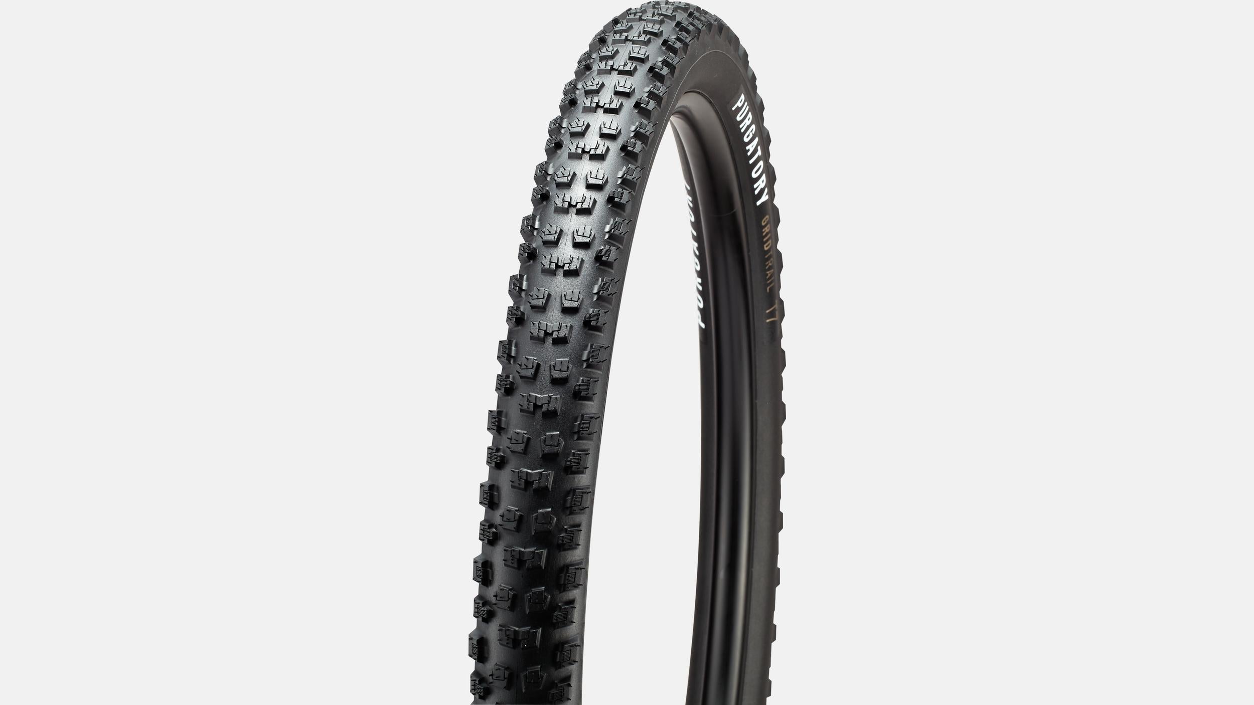 Conoce al totalmente nuevo Purgatory. Esta banda de rodadura para todo tipo de terrenos cuenta con grandes tacos cuadrados en el centro que muerden en suelos blandos, mientras proporcionan apoyo en terrenos compactos. Es igualmente adecuada tanto para la rueda delantera como para la trasera de la bicicleta. Los tacos "block-in-block" ruedan rápido, se adaptan al terreno y ofrecen confianza suprema cuando se presiona al máximo. El Purgatory tiene suficiente agarre para ofrecer seguridad en una amplia gama de terrenos.