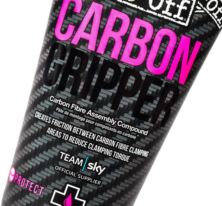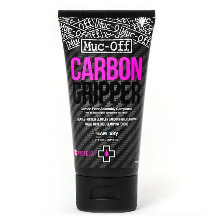 Diseñado para mecánicos y ciclistas que construyen su propia bicicleta, Muc-Off Carbon Gripper crea fricción entre las áreas de sujeción de fibra de carbono y reduce el par de sujeción, lo que reduce la posibilidad de fatiga, fracturas internas o acorta la vida útil de los componentes.