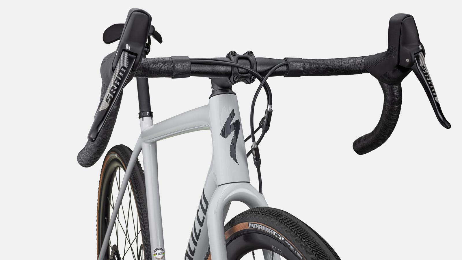 Este Crux Comp viene equipado con un grupo confiable y de cambio suave SRAM Rival 1 con frenos hidráulicos de disco, ruedas resistentes DT G540 Disc y neumáticos Pathfinder Pro de 700x38mm 2Bliss Ready que ofrecen agarre en terrenos difíciles.