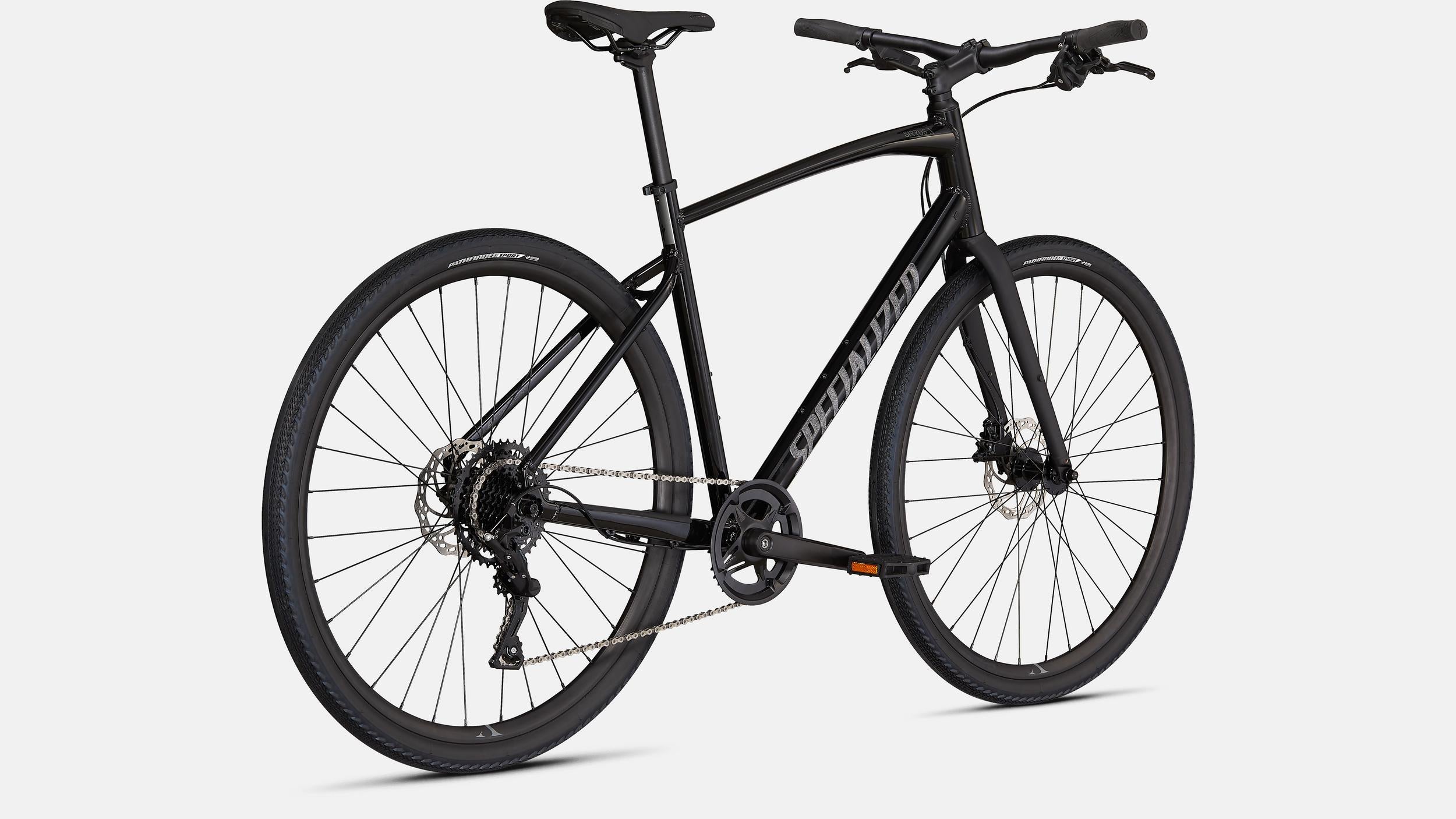 Specialized A1 Premium Aluminum, Fitness Geometry, butted tubing, internal cable routing, flat-mount disc, quick-release, Plug + Play rack/fender mounts