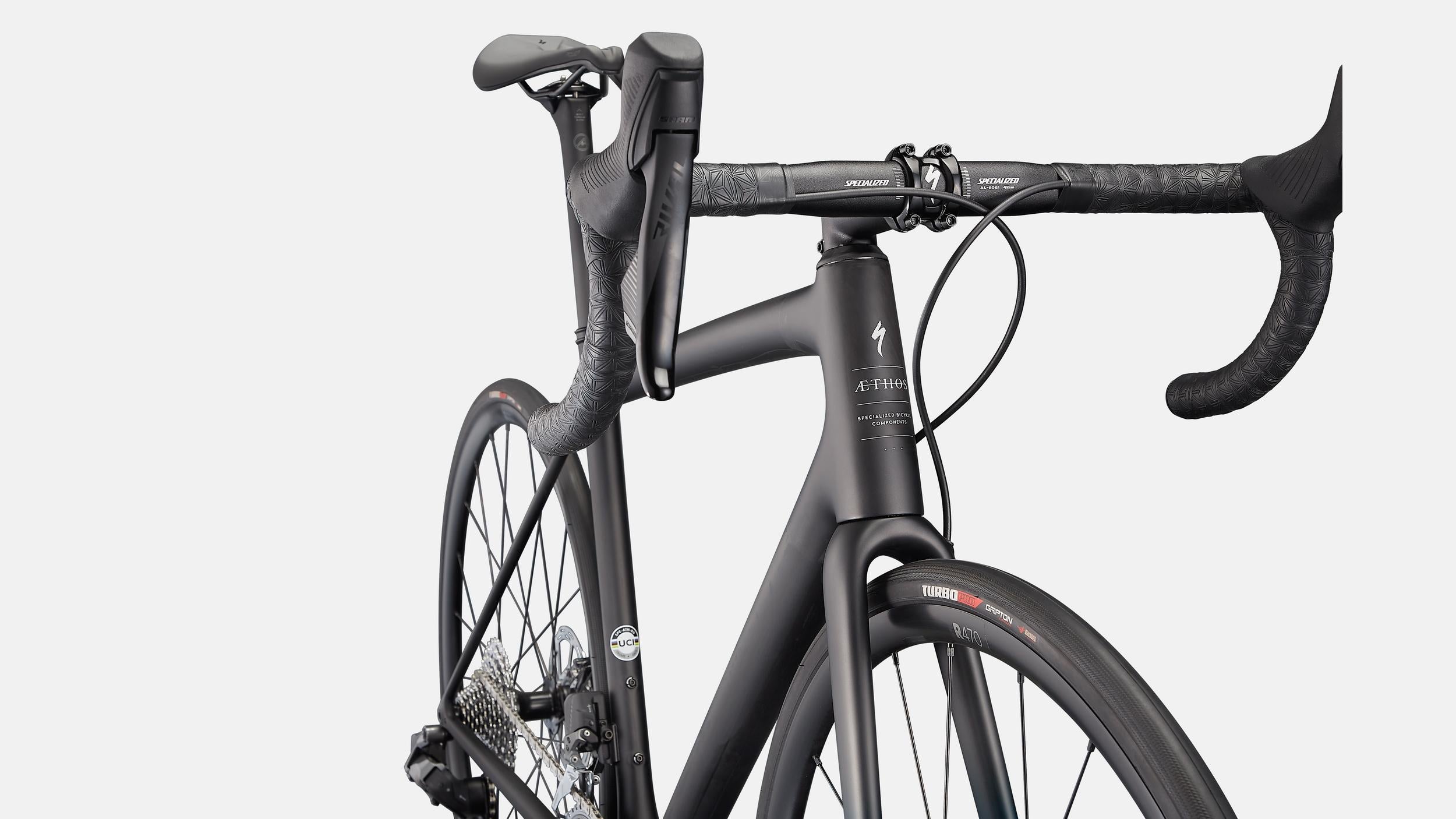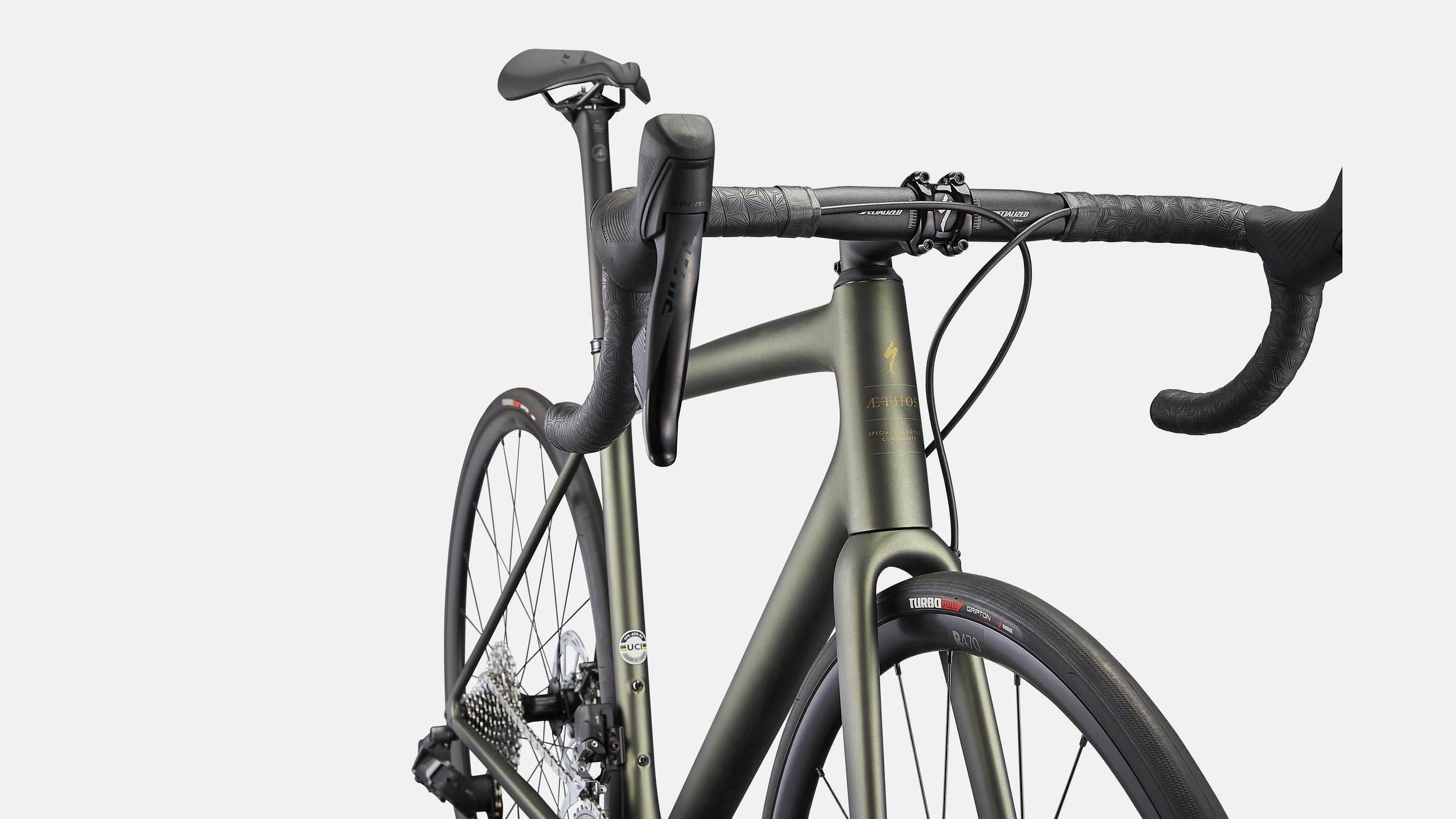 - The Aethos frame has been designed with the perfect combination of ultimate ride feel, light weight, and style—from accelerating up steep pitches and descending technical descents, to all-day saddle comfort on even the longest coffee rides, the Aethos hits the mark. But how, you ask? By reinventing the traditional road shape found on bikes of the past, we’ve subtly altered these shapes to deliver massive gains in stiffness and balance, all without affecting weight or durability. Pair that with an entirely new layup and process that we’ve perfected over multiple decades and you have the lightest frame out there (585 grams, S-Works, size 56cm). The Aethos is more than just a new bike, it’s the first of a new breed.
