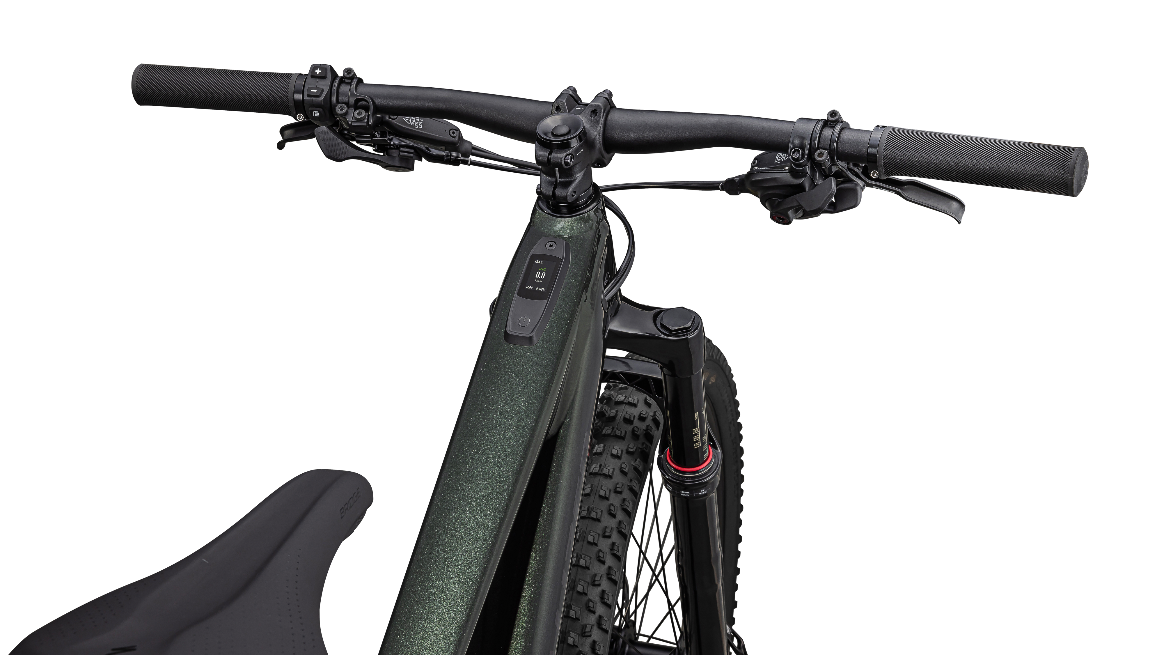 Specialized MasterMind TCU, percentage of remaining charge, 120 possible display configurations, MicroTune assist adjustment, over-the-air updates, ANT+/Bluetooth®, w/Handlebar remote
