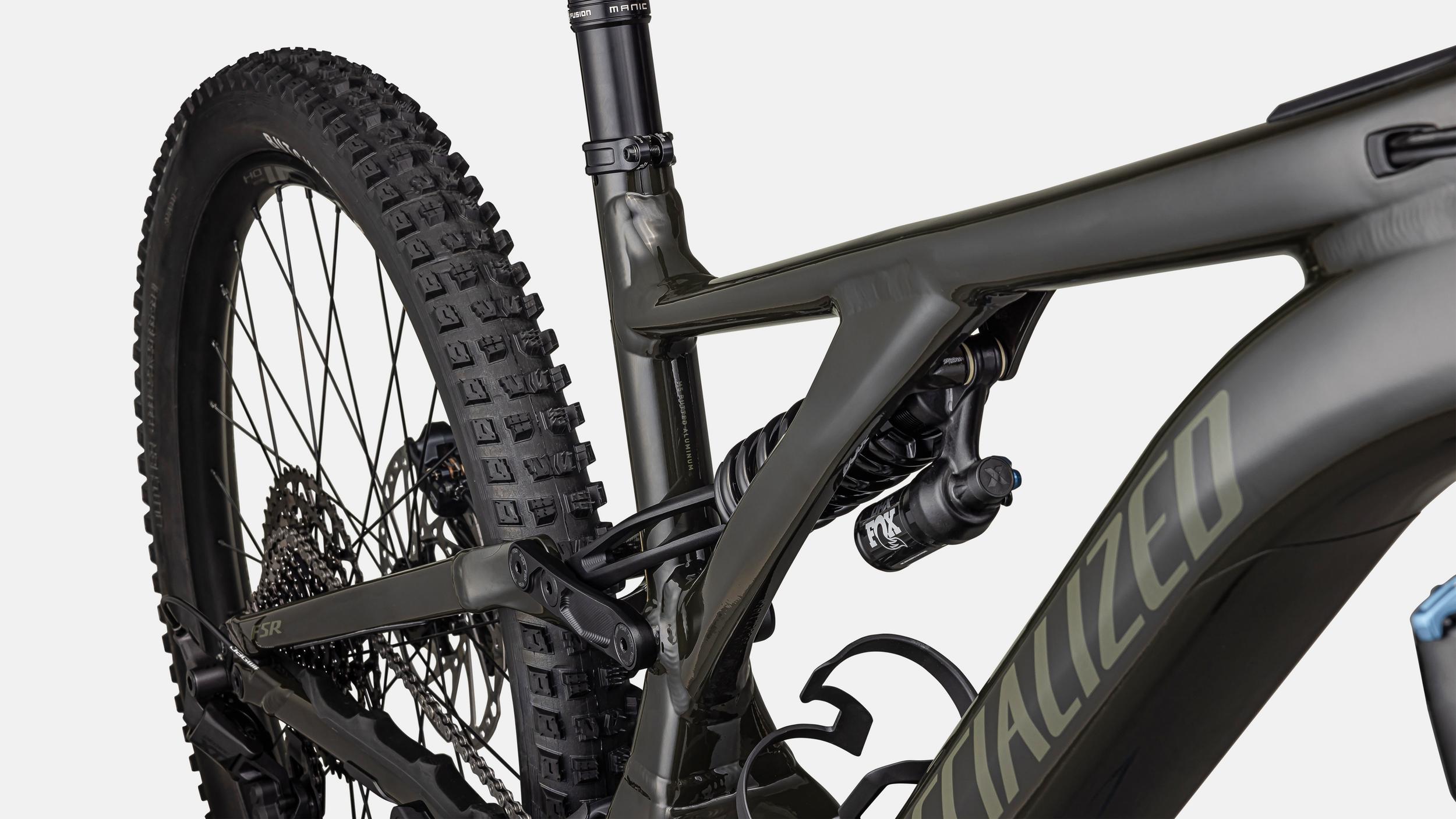 Specialized M5 Premium Aluminum, 27.5 Trail Geometry, integrated down tube battery, enclosed internal cable, Command Post routing, 148mm spacing, fully sealed cartridge bearings, 180mm of travel