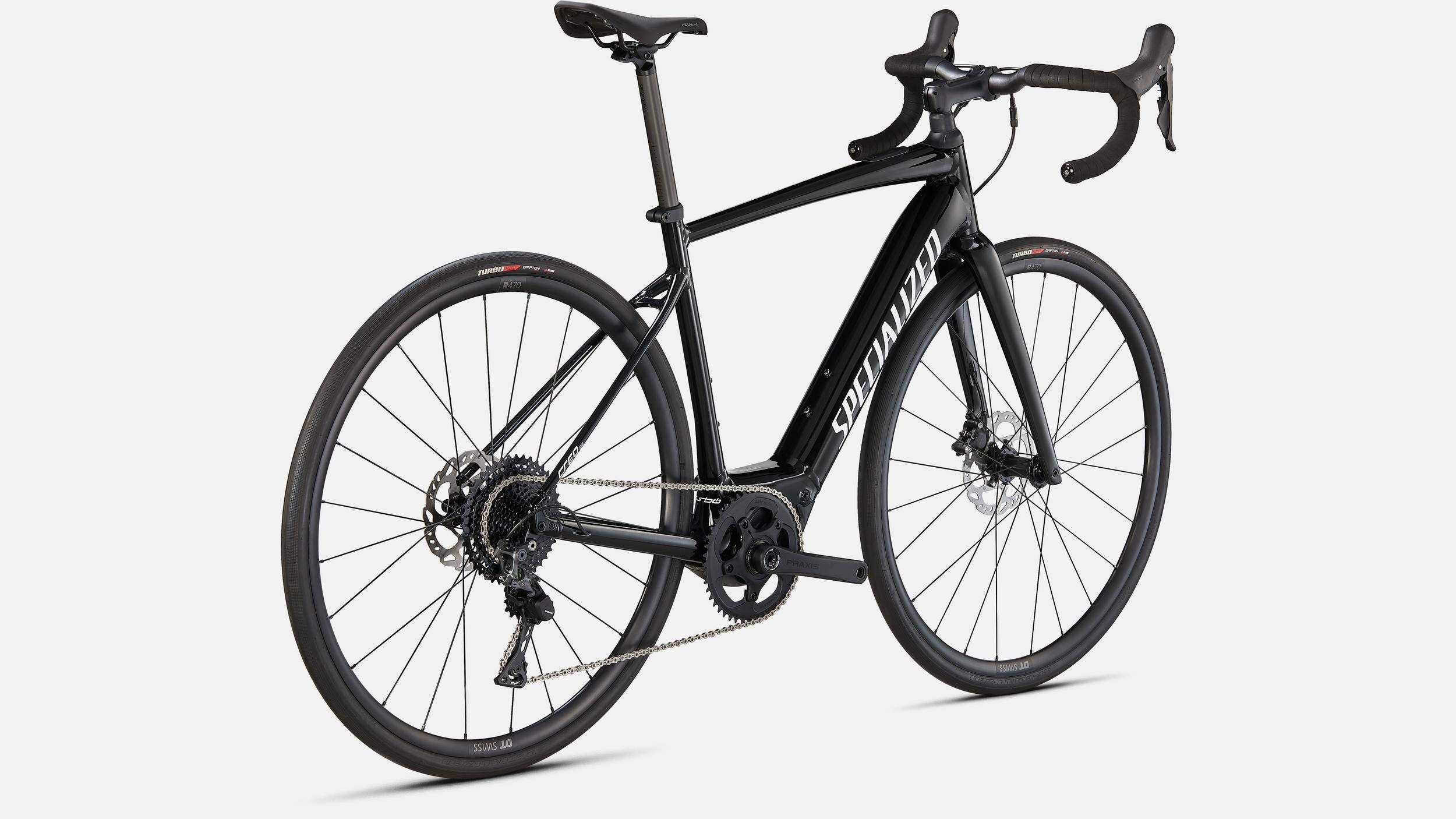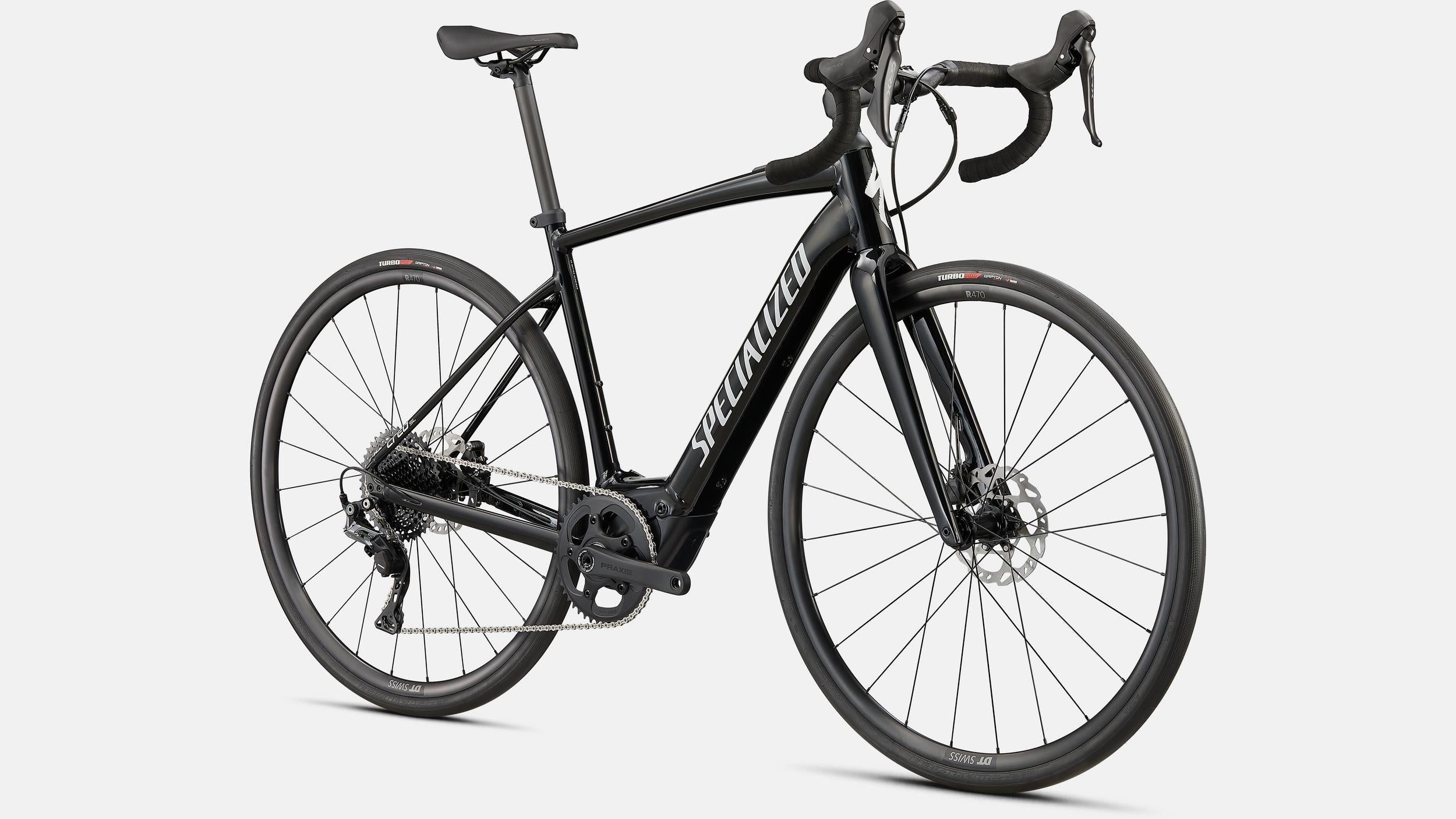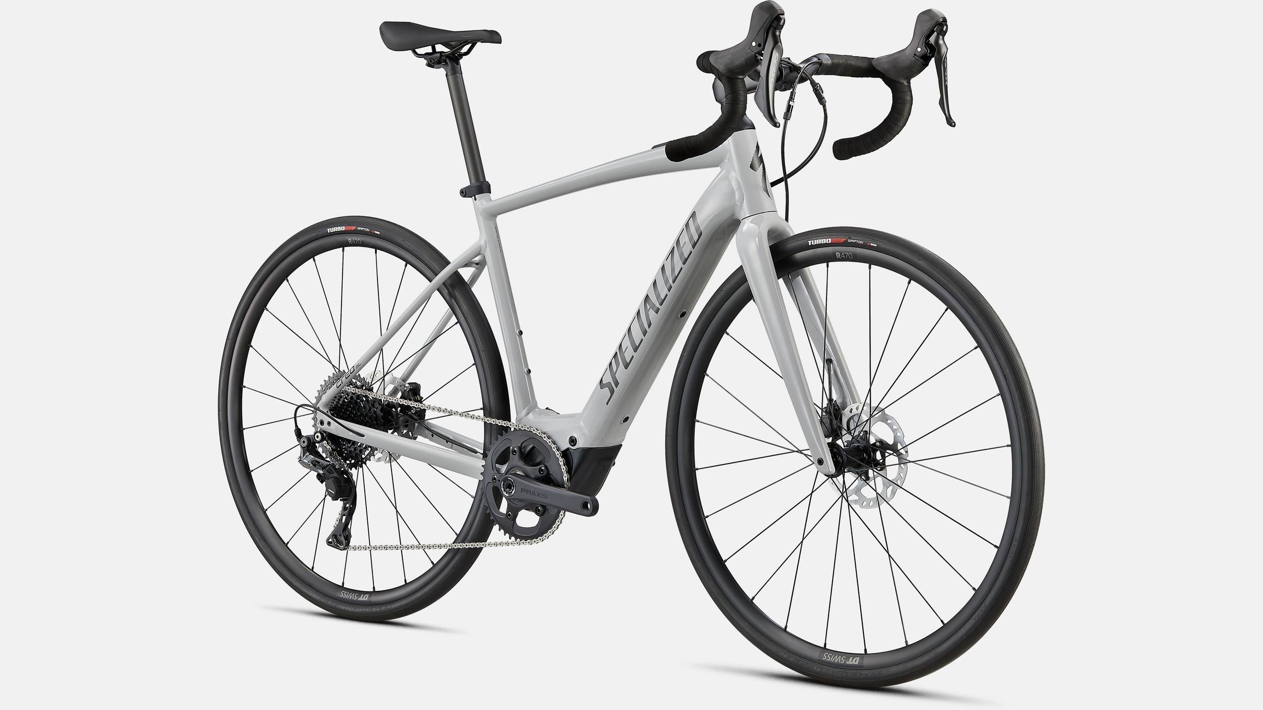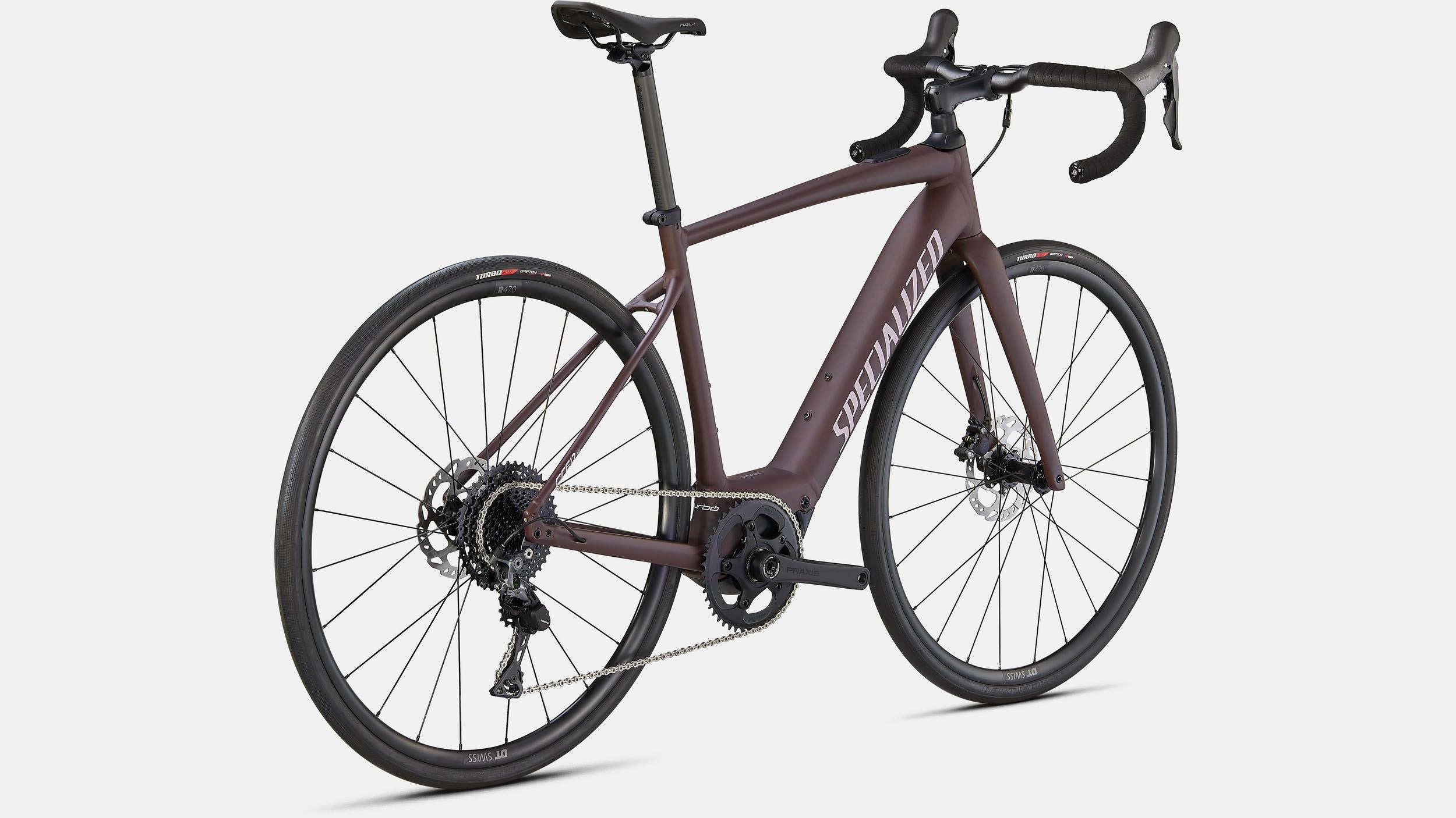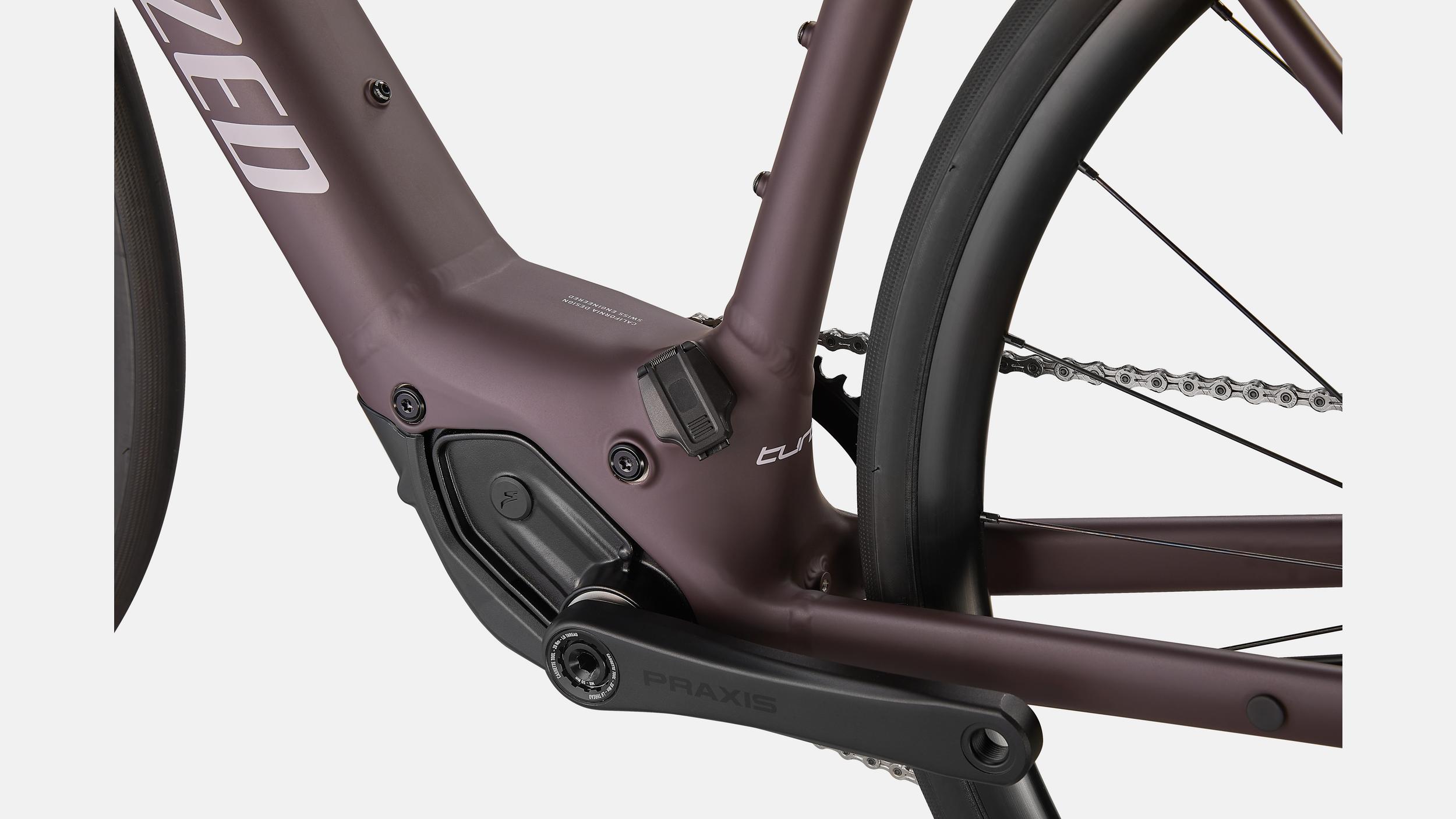 Specialized E5 Premium Aluminum frame, Open Road Geometry, front/rear thru-axles, fully integrated down tube battery, internal cable routing, fender/rack mounts, Boost™ 12x148mm