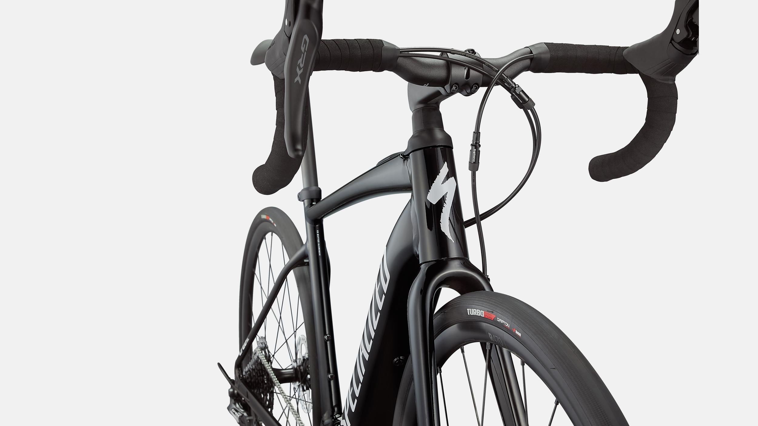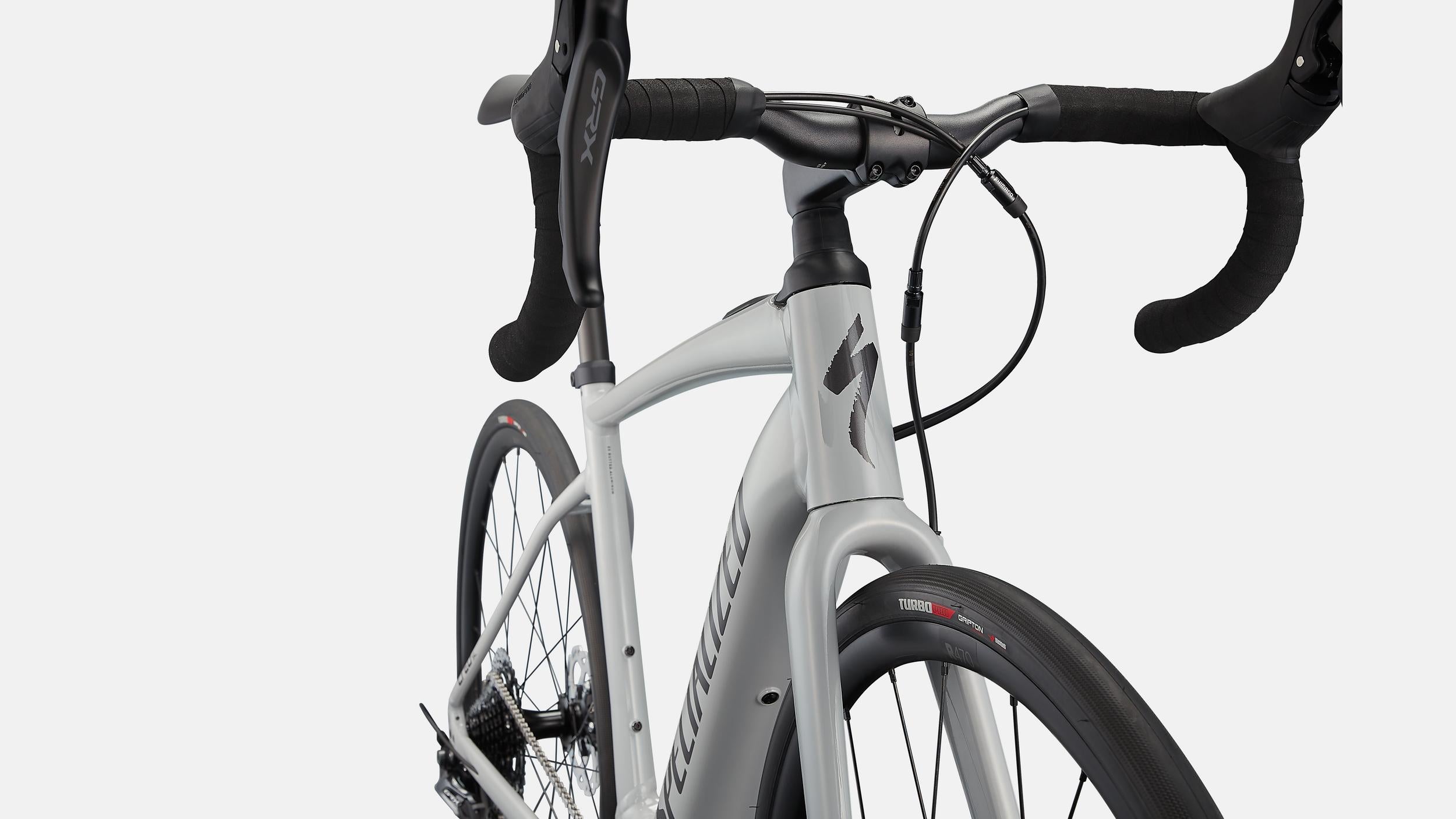 The Turbo Creo SL E5 Comp features an E5 Premium Aluminum frame and a Future Shock 1.5. For the spec, we included a 1x Shimano GRX group to take on shifting and braking duties, while DT R470 Boost™ wheels get wrapped in 28mm Turbo Pro tires to keep you rolling worry-free. And for the saddle, you'll find that our fan-favorite Body Geometry Power Sport provides plenty of comfort.