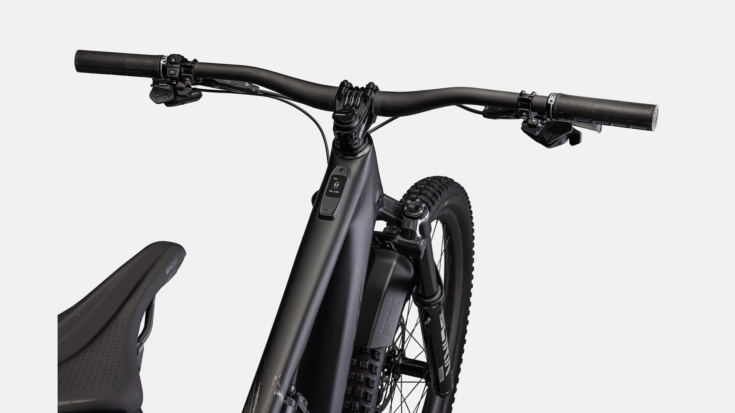 CUADRO DE CONTROL MASTERMIND — Nuestra unidad de control de bicicleta eléctrica más avanzada e intuitiva. Conectando la bicicleta, el sistema operativo Turbo, la aplicación Specialized y el ciclista, todo en una pantalla protegida y fácilmente visible. Con MicroTune, puedes ajustar finamente los niveles de potencia en tiempo real, optimizando la gestión de la autonomía y el rendimiento.